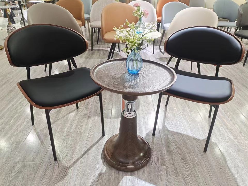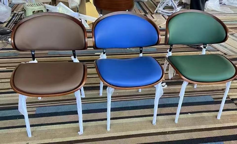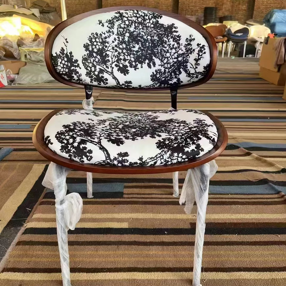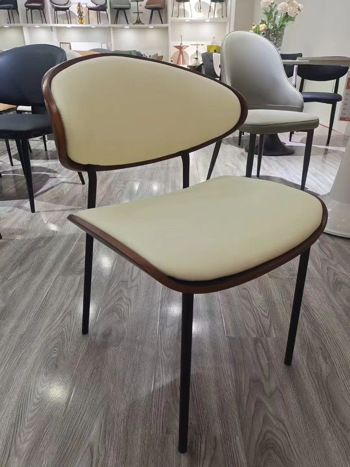 Chaise de salle à manger design de luxe simple et légère sac en cuir souple chaise de loisirs café en bois incurvé moderne négociation d'invité personnel