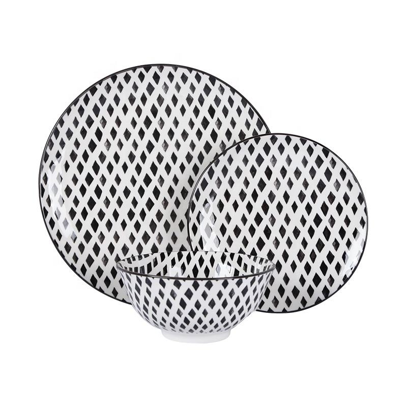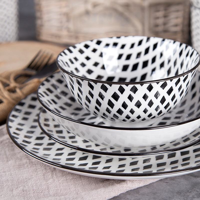 Vaisselle Simple et élégante restaurant familial fruits dîner noir impression vaisselle en céramique bols tasses et assiettes