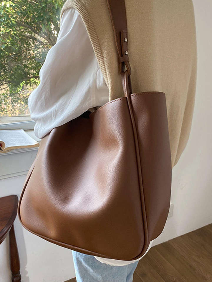 Sac à bandoulière simple en cuir PU de couleur unie pour femmes, sac à main de grande capacité pour femmes, sac à bandoulière pour femmes