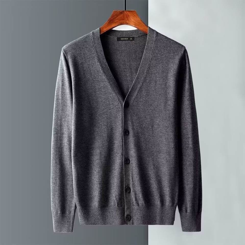 Cardigan simple et polyvalent de couleur unie, pull pour homme, veste fine, tendance, ligne business, décontracté, printemps et automne, chemise en tricot