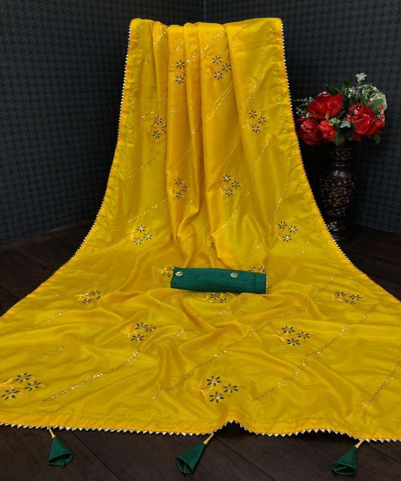 Coton, Soie, Lin, Polyester, Rayonne, Viscose, Cachemire, NYLON, Pallu Chinon and Skirt Rangoli, Georgette, Chiffon, Chinon, silk base fabricsMatériel