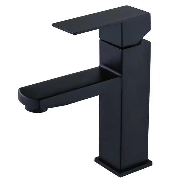 Mitigeur de Lavabo Économique en Acier Inoxydable Noir Mat pour Salle de Bain, Robinet Simple Poignée