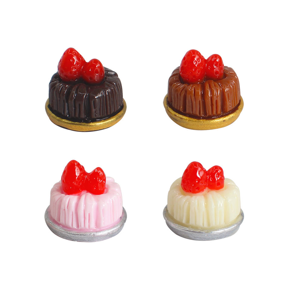 Cabochon en résine à dos plat, motif gâteau aux fraises et chocolat simulé, pour la création de miniatures de cuisine DIY, breloques en résine alimentaire et décoration de coques de téléphone