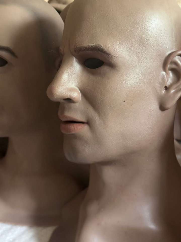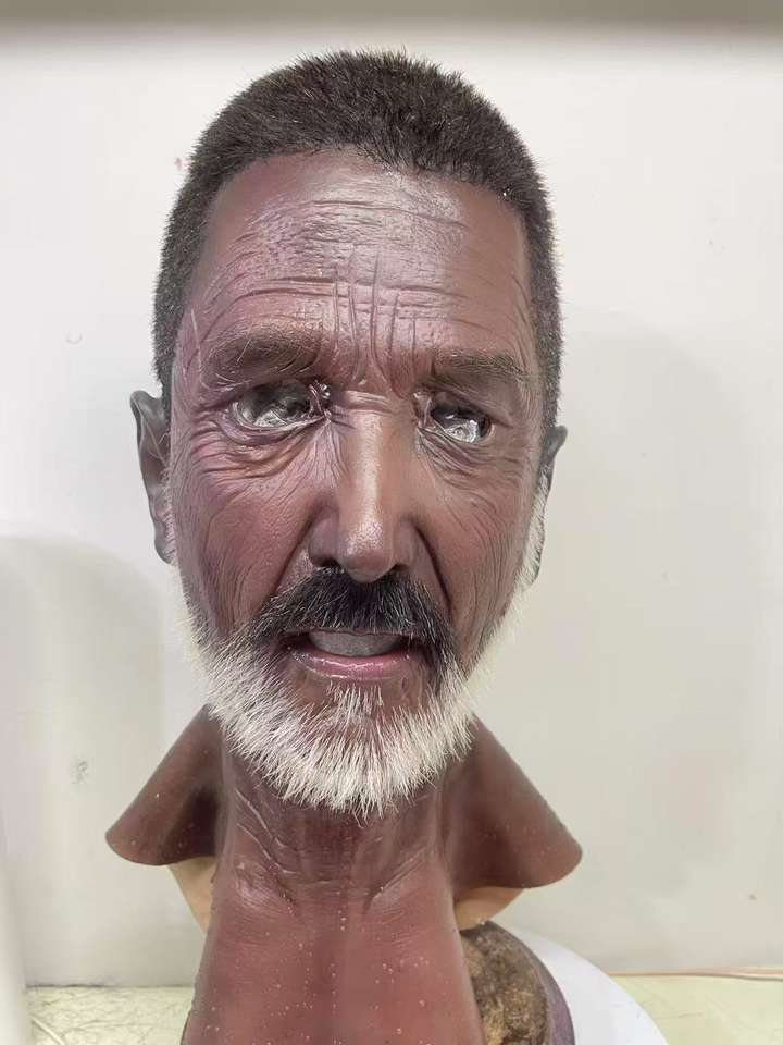 Masque en silicone simulé de peau foncée avec cheveux et barbe masque de déguisement de Cosplay à tête complète pour accessoires de performance de fête d'Halloween