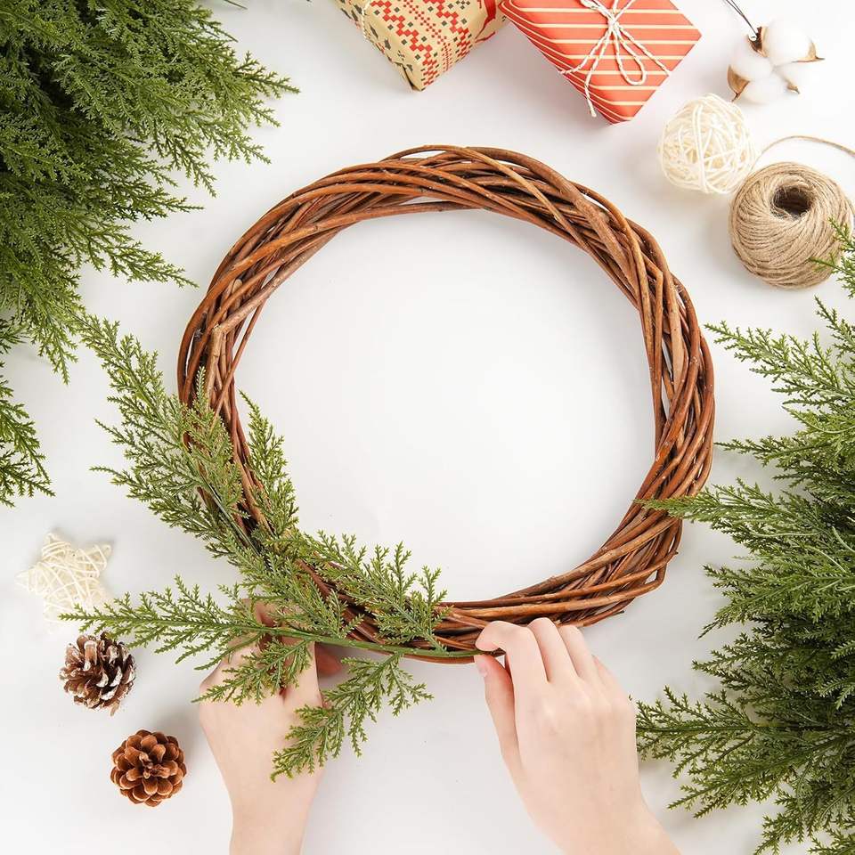 Branches d'aiguilles de pin simulées, décorations artificielles en plastique pour Noël, mariage, Pâques, accessoires d'intérieur pour la maison et le bureau
