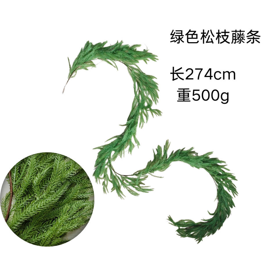 Aiguilles de pin simulées bandes de rotin en caoutchouc souple tenture murale décoration de plante verte de Noël décoration de style forestier