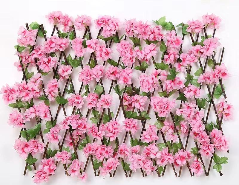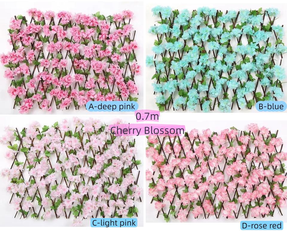 Décorations murales de plantes rurales simulées, clôtures, fleurs artificielles, clôtures de cerisier, clôtures rétractables, revêtements de balcon