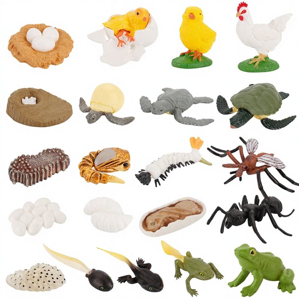 Modèle d'animal de simulation en PVC en gros, poulet, canard, oie, papillon, tortue, grenouille, cycle de vie, aides pédagogiques Montessori, fait à la main