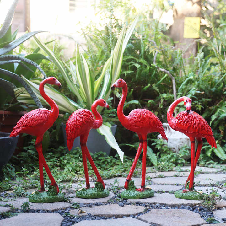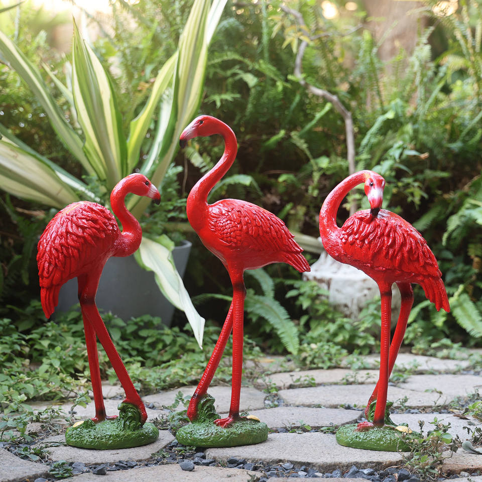 Sculpture de flamants roses en fibre de verre résistante à l'eau pour la décoration de jardin et l'aménagement paysager extérieur