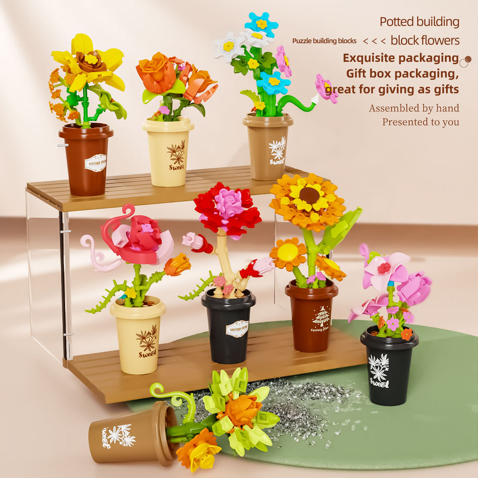 Blocs de construction de simulation de bouquet, modèle d'assemblage de fleurs, ornements végétaux, briques techniques MOC pour la décoration DIY des filles, cadeaux