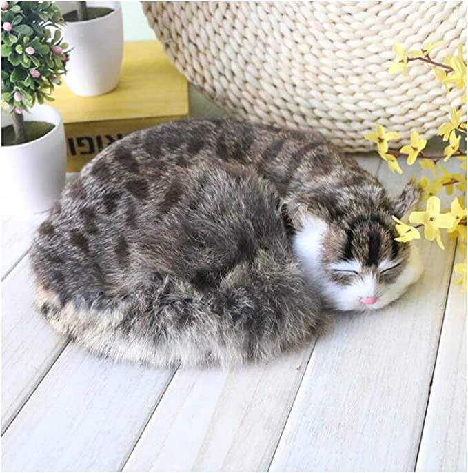 Jouet en peluche chaton chat de simulation doux et câlin, chaton qui ronronne, chat tigré, jouet pour cadeau