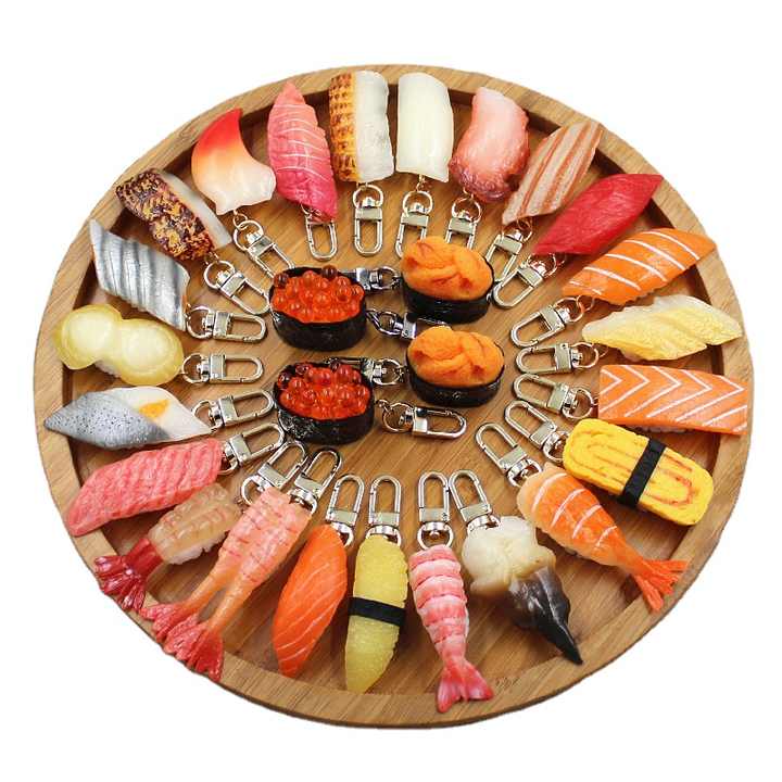 Porte-clés cuisine japonaise kawaii réaliste 3d saumon Sushi porte-clés créatif poisson crevettes Sushi porte-clés japonais