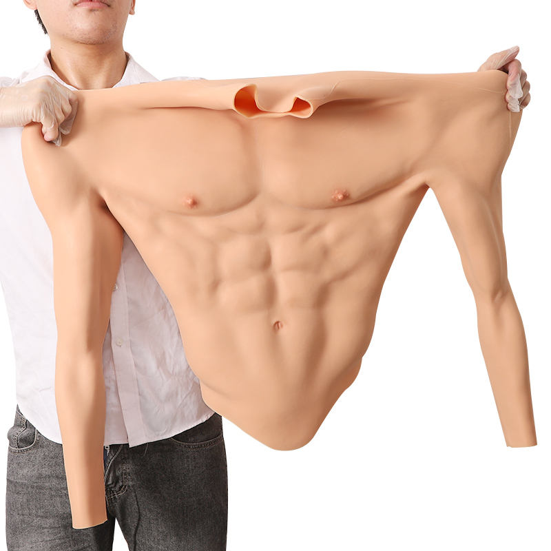 Costume musculaire en silicone pour cosplay, faux torse, faux ventre, muscle, demi-corps, avec bras musclés, vêtements de compression