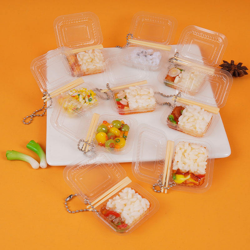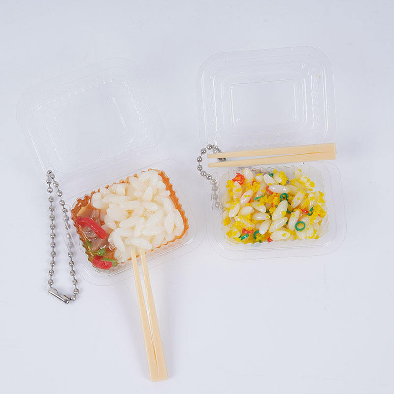 Pendentif porte-clés créatif en forme de boîte de restauration rapide, riz frit, riz frit au chili, bol de riz à la viande, décoration de bento alimentaire