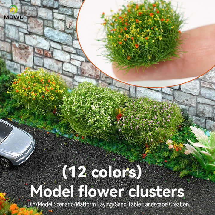 Modèle de grappe de fleurs artificielles, modèle de paysage de végétation et de champ de fleurs, matériel de bricolage pour table de sable de train miniature