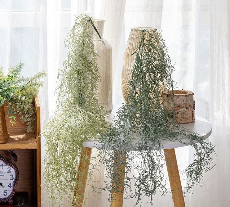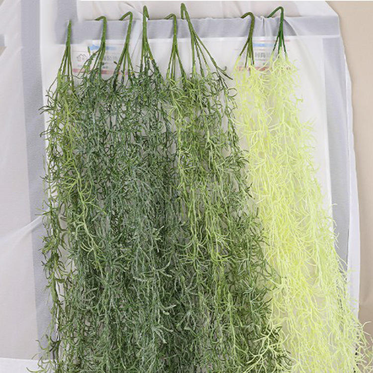 Simulation Tenture Murale Vieil Homme Barbe Homestay Décoration Rotin Feuilles Fond Disposition Murale Plantes Vertes
