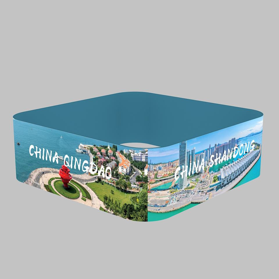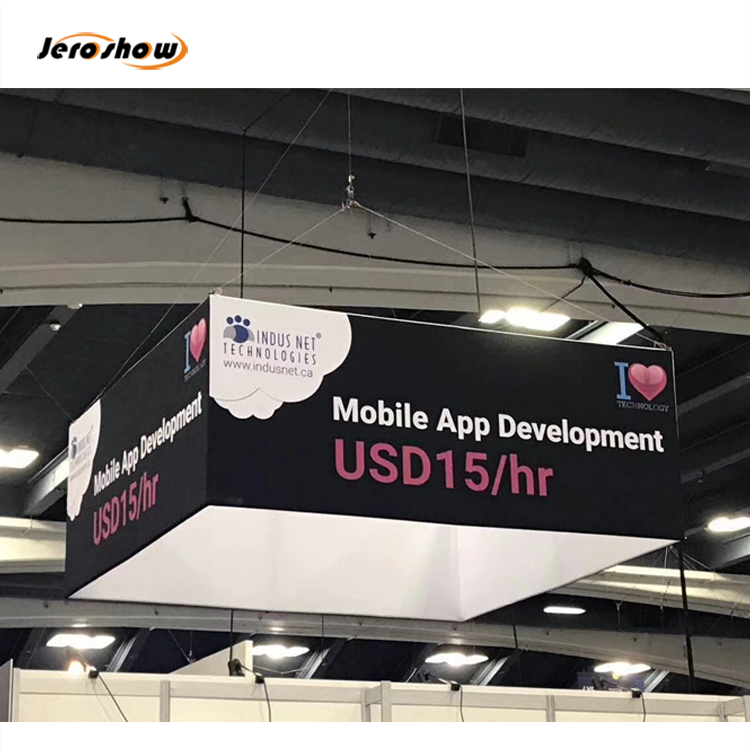Équipement de salon professionnel suspendu, personnalisé, en aluminium, forme incurvée, imprimé par sublimation thermique, durable, léger et portable