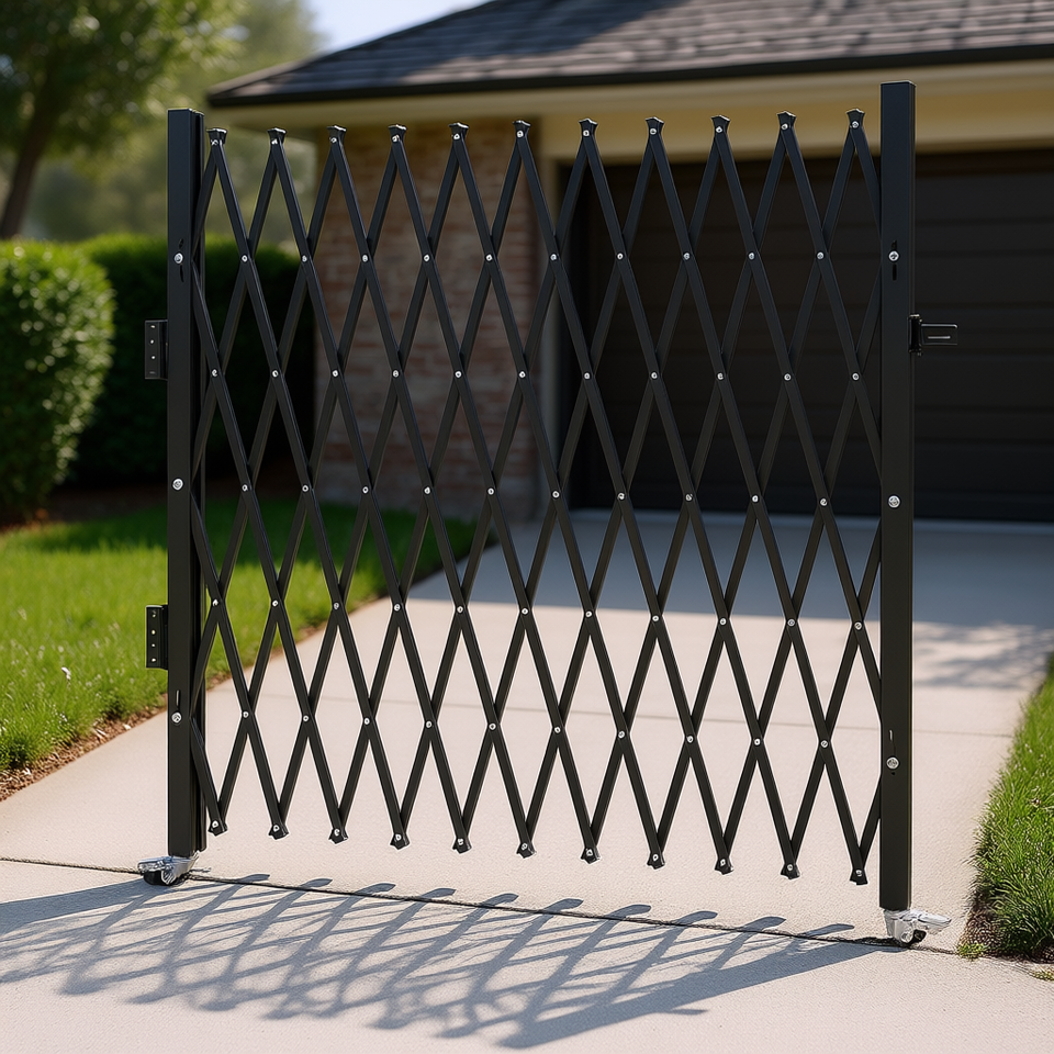 Porte de sécurité pliante accordéon 75 x 50 pouces en acier, rétractable pour garage et abri, commande manuelle, design industriel