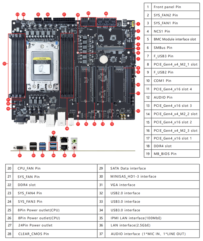 Fente d'expansion:5 * PCIE 4.0x16, 1 * PCIE 4.0x8