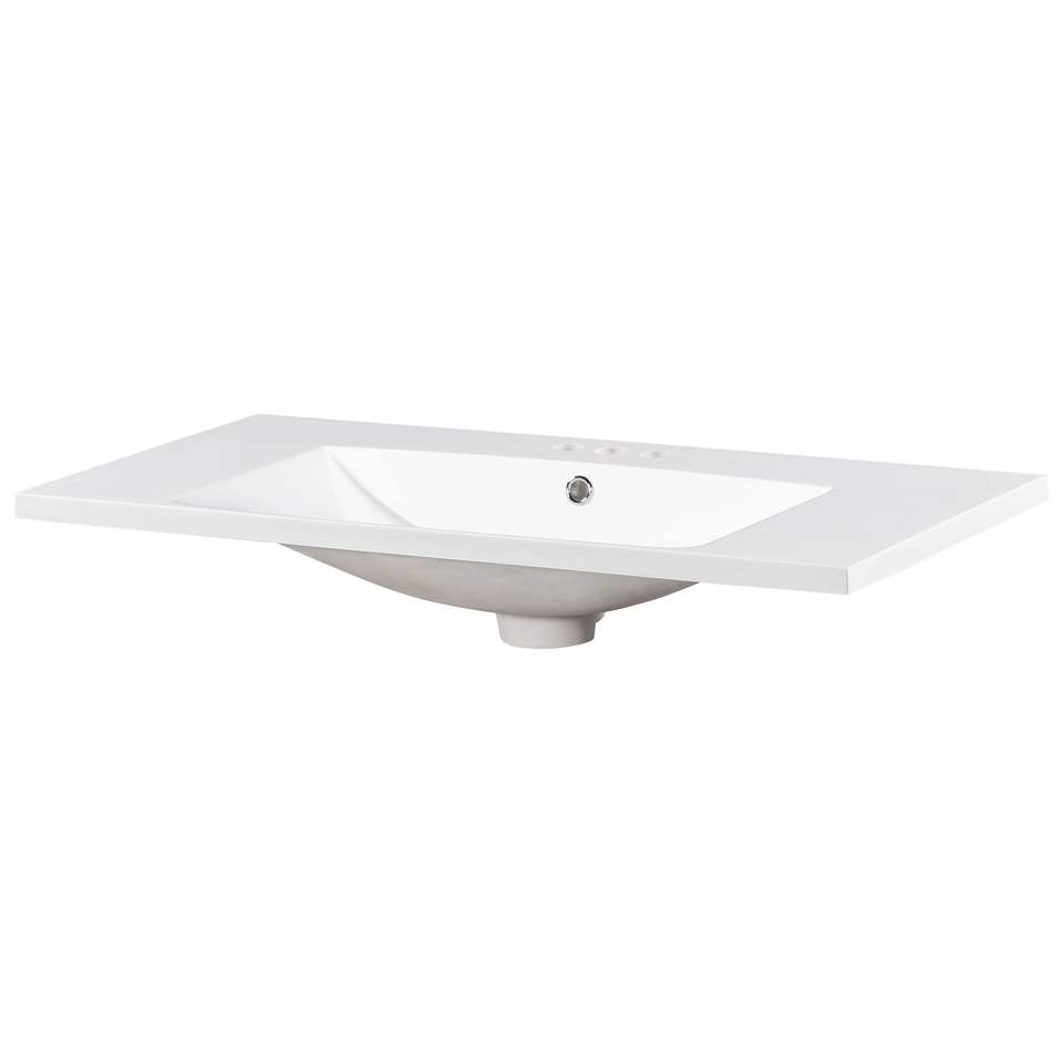 Vasque simple en résine pour salle de bain, avec 3 trous pour robinets, sans meuble sous vasque