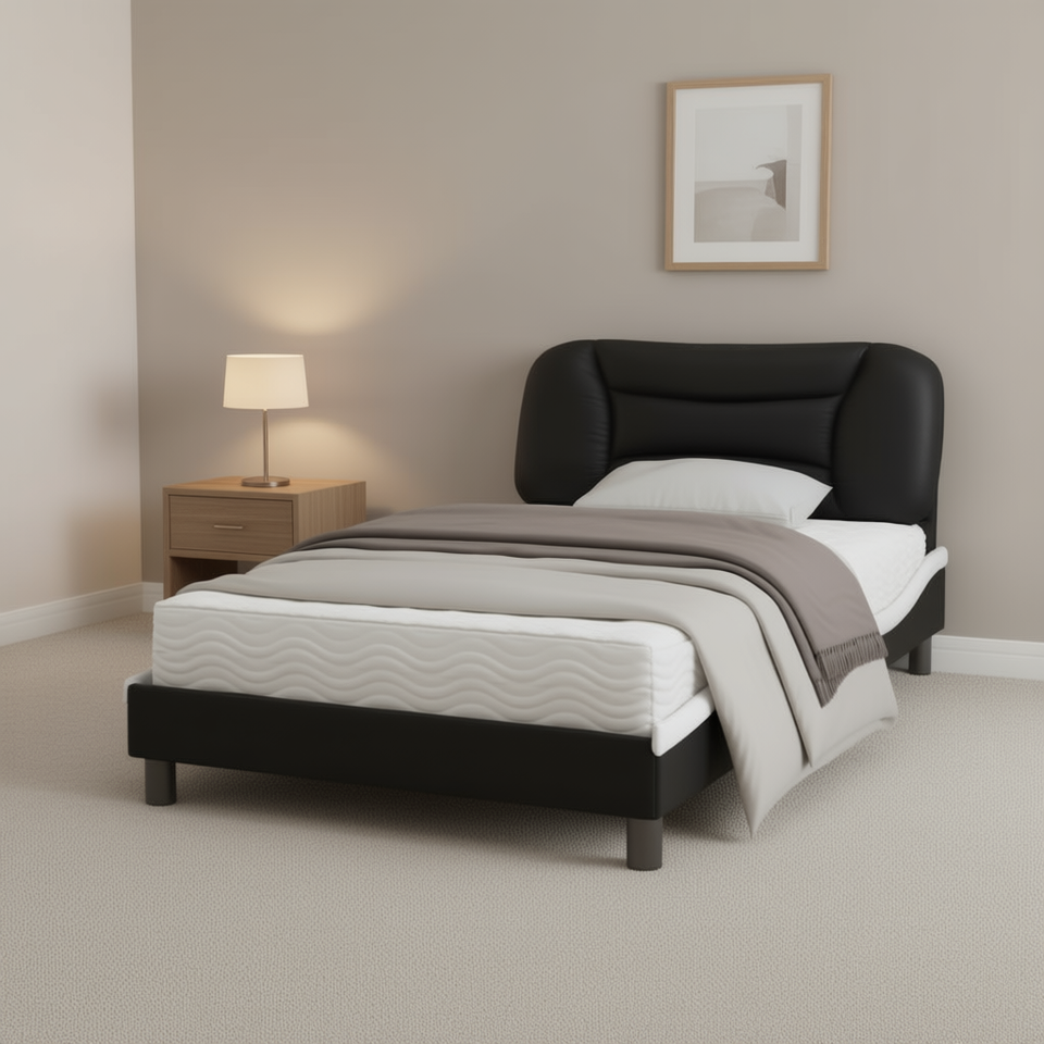 Cadre de lit simple en similicuir noir, rectangulaire, rembourré, design moderne, lit moelleux, meubles de chambre à coucher