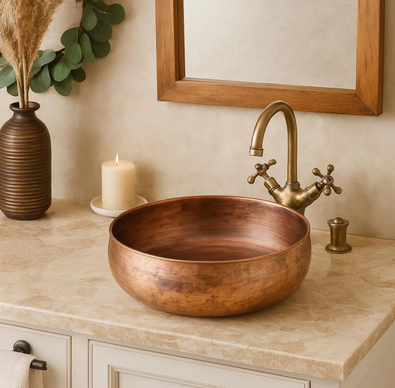 Évier de cuisine en cuivre design à cuve unique, évier rond pour évier de cuisine, matériau en cuivre pur, taille personnalisée