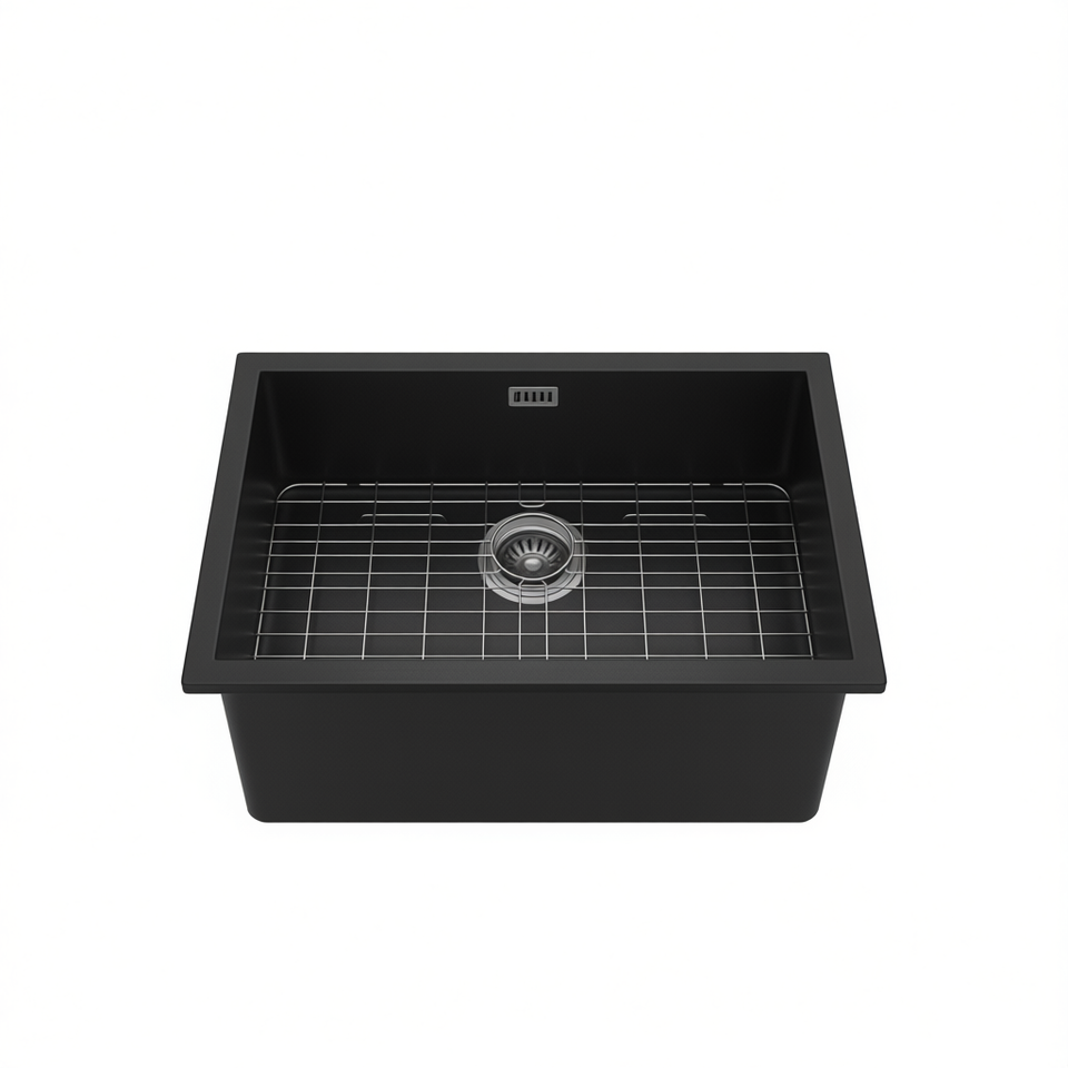 Évier de cuisine à cuve unique 32x19 pouces, noir canon de fusil, design rectangulaire à encastrer sous plan