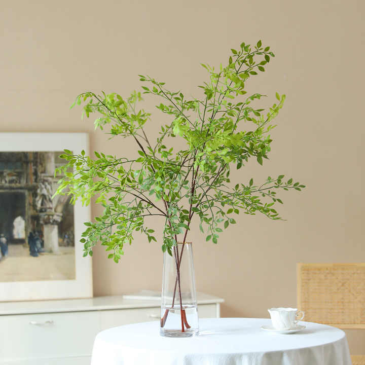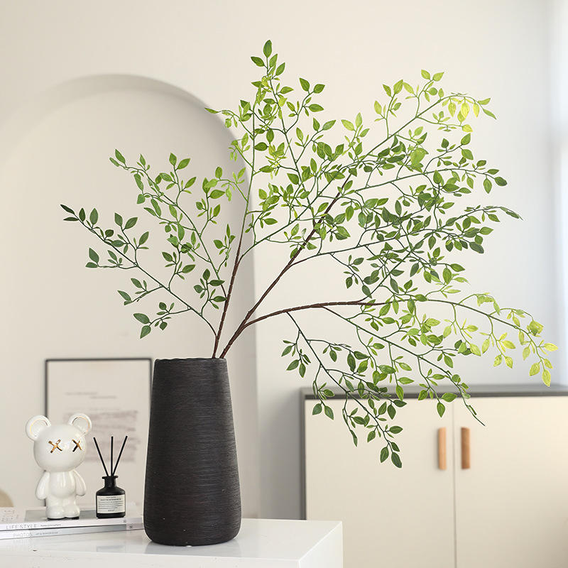 Plante artificielle en bambou simulé à 3 branches, en PVC souple, pour décoration intérieure/extérieure et diffusion en direct
