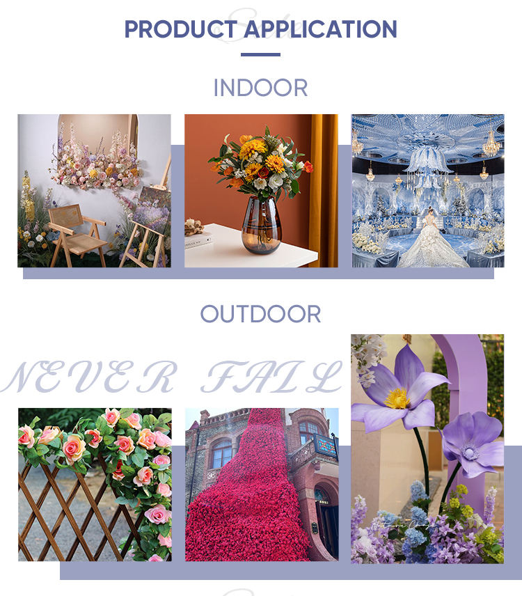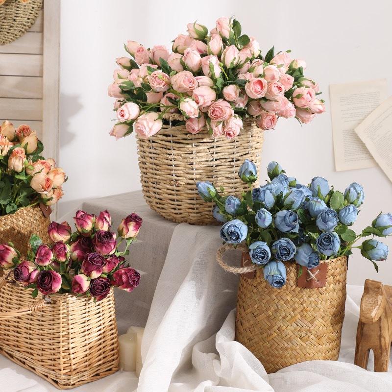 Fleur en soie simulée à la main à 7 têtes avec bord brûlé pour la décoration du salon et les accessoires photo