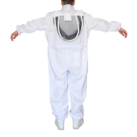 Combinaison d'apiculture respirante à fermeture à simple boutonnage avec capuche en voile détachable et combinaison de protection en coton pour apiculteurs