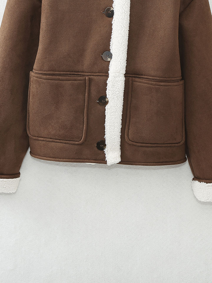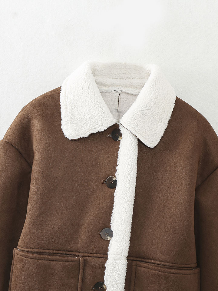 Single Breasted Long Sleeve Turn Down Collar Brown Color Casual Fashion Winter Jacket for Women