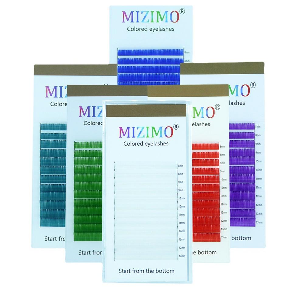 Faux cils synthétiques monocolores 0.07 8-13 Bleu Blanc Violet Jaune Gris Orange Rose Marron Débutant par le bas