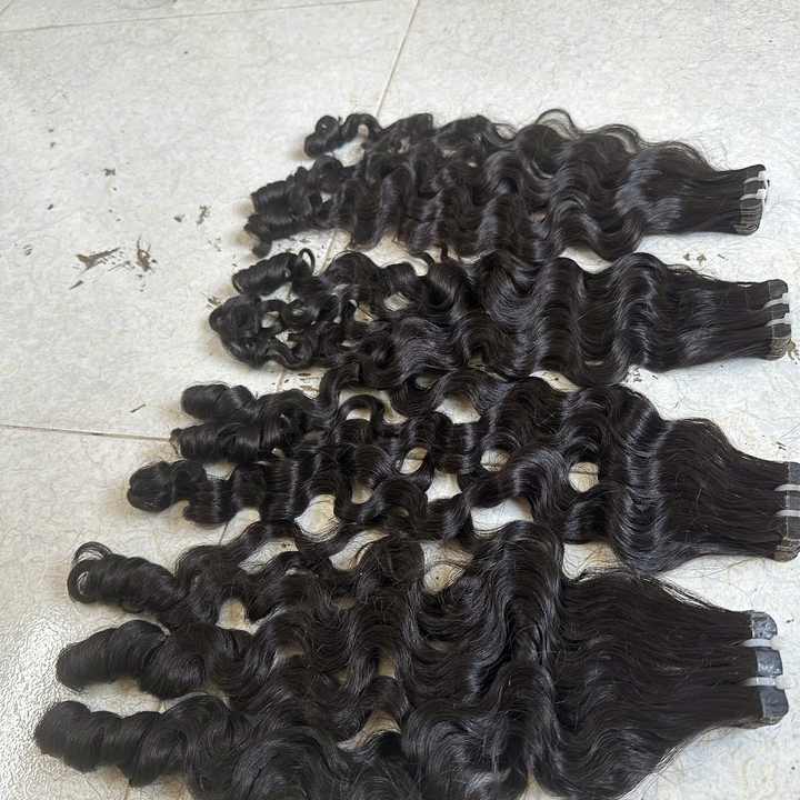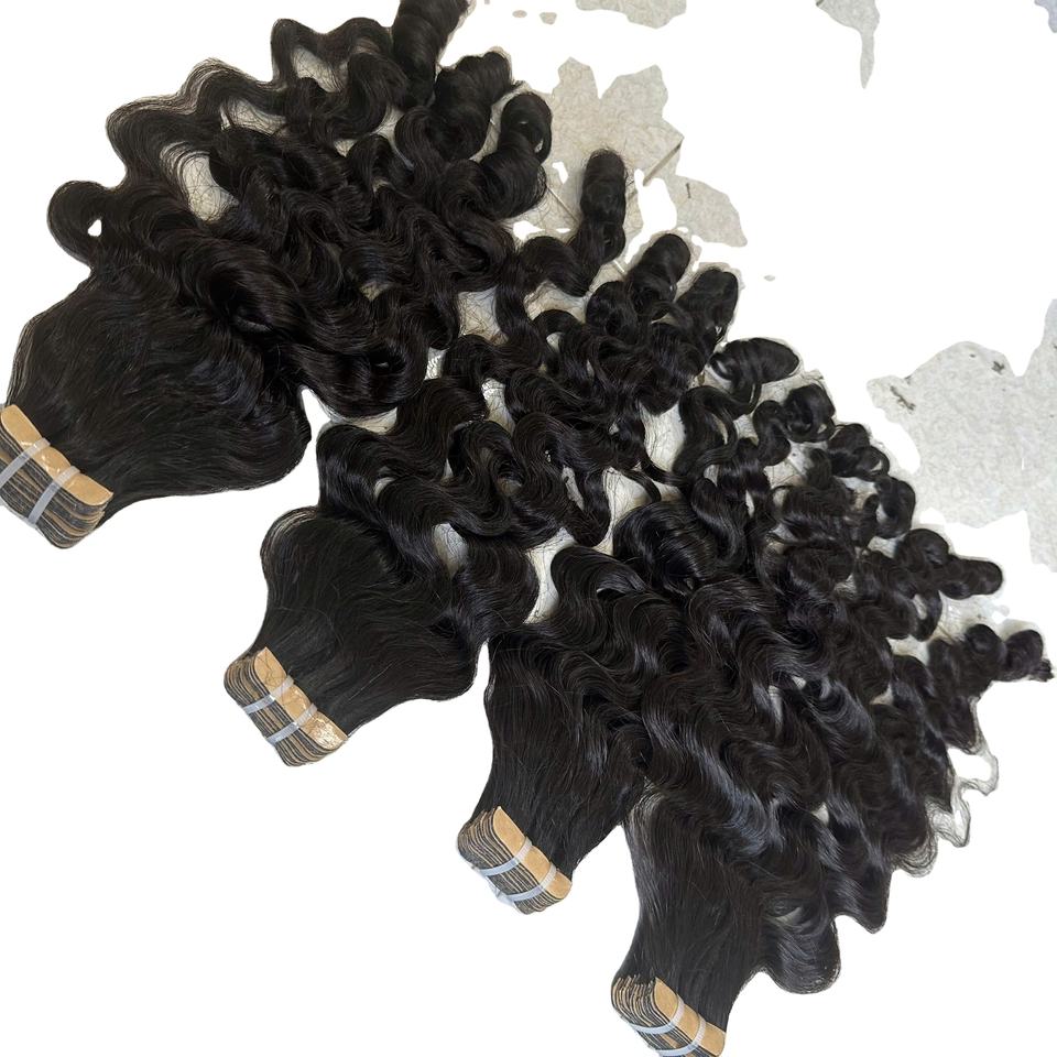 Single Donor Human Hair Wholesale Price HD Lace Frontal Natural Raw Virgin Hair Human Hair Tape Ins Flat Tip Deep Wave Curly