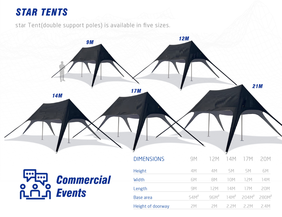 5.5*9.5m,7.8*12.6m,9.1*14.4m,12*17.6m,13.2*20m,15.6*22.5m