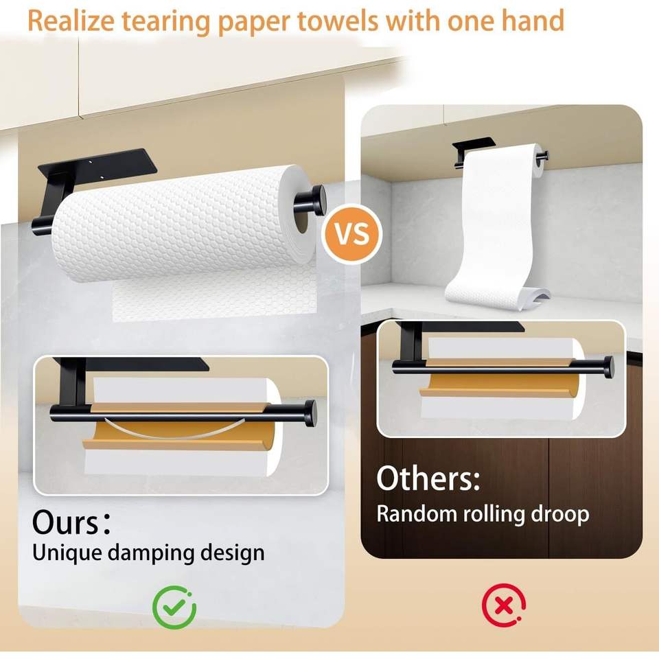 Porte-serviettes en papier à commande d'une seule main avec effet amortissant, accessoire de cuisine sous armoire avec adhésif disponible