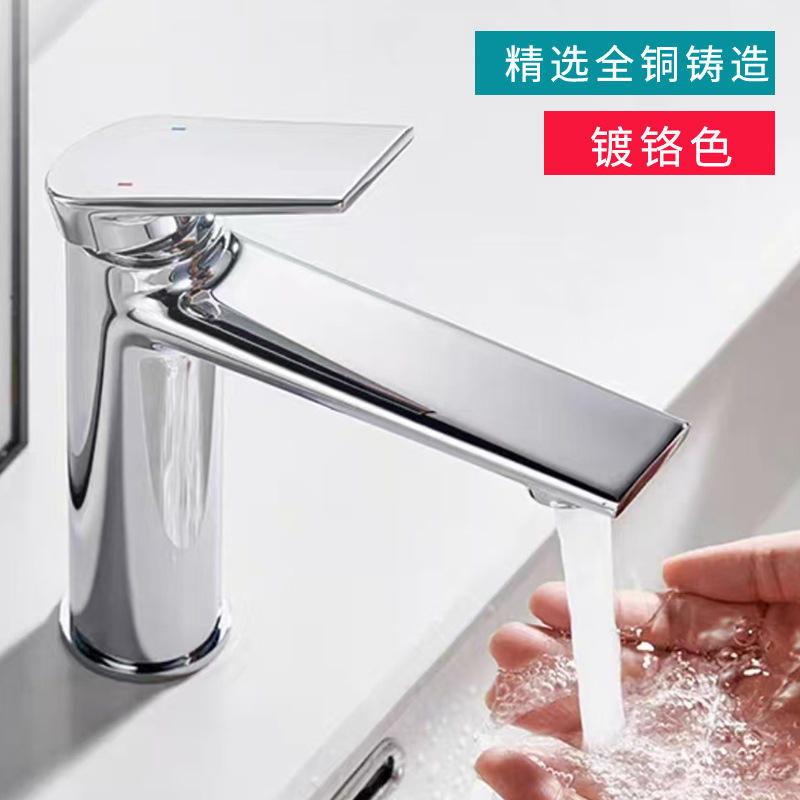 Robinet de lavabo monotrou en cuivre à poser sur comptoir, avec cartouche céramique, de luxe, pour eau chaude et froide, idéal pour la maison, la salle de bain et l'hôtel