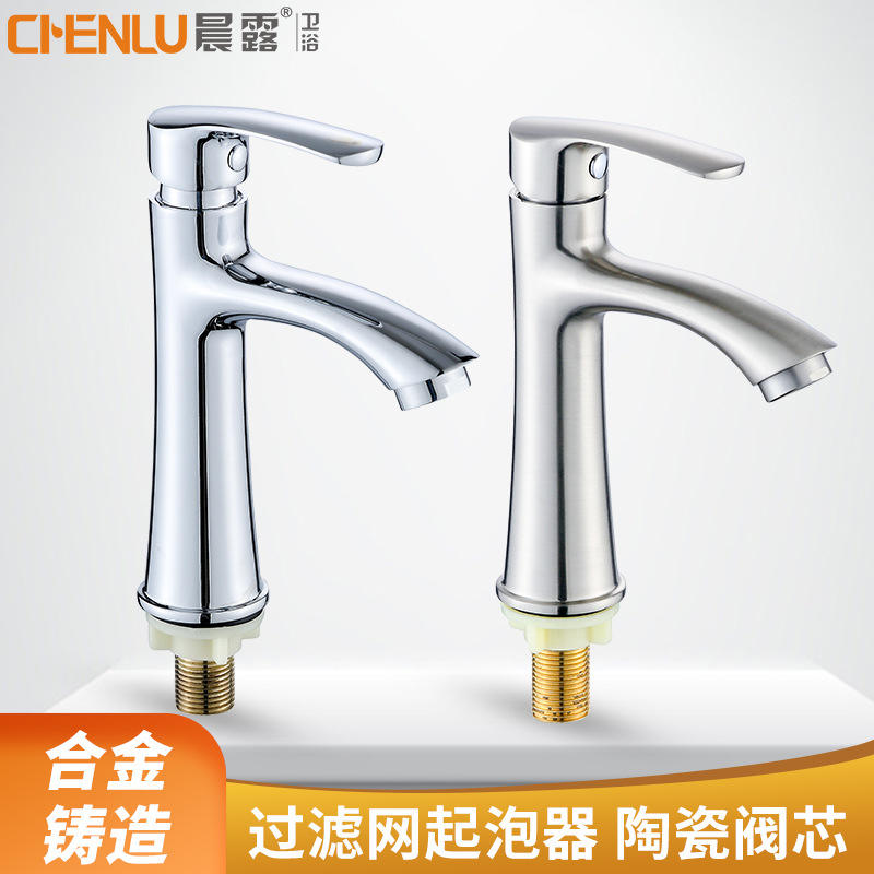 Robinet de lavabo monocommande en acier inoxydable, à poser sur comptoir, monotrou, eau froide, avec cartouche en laiton