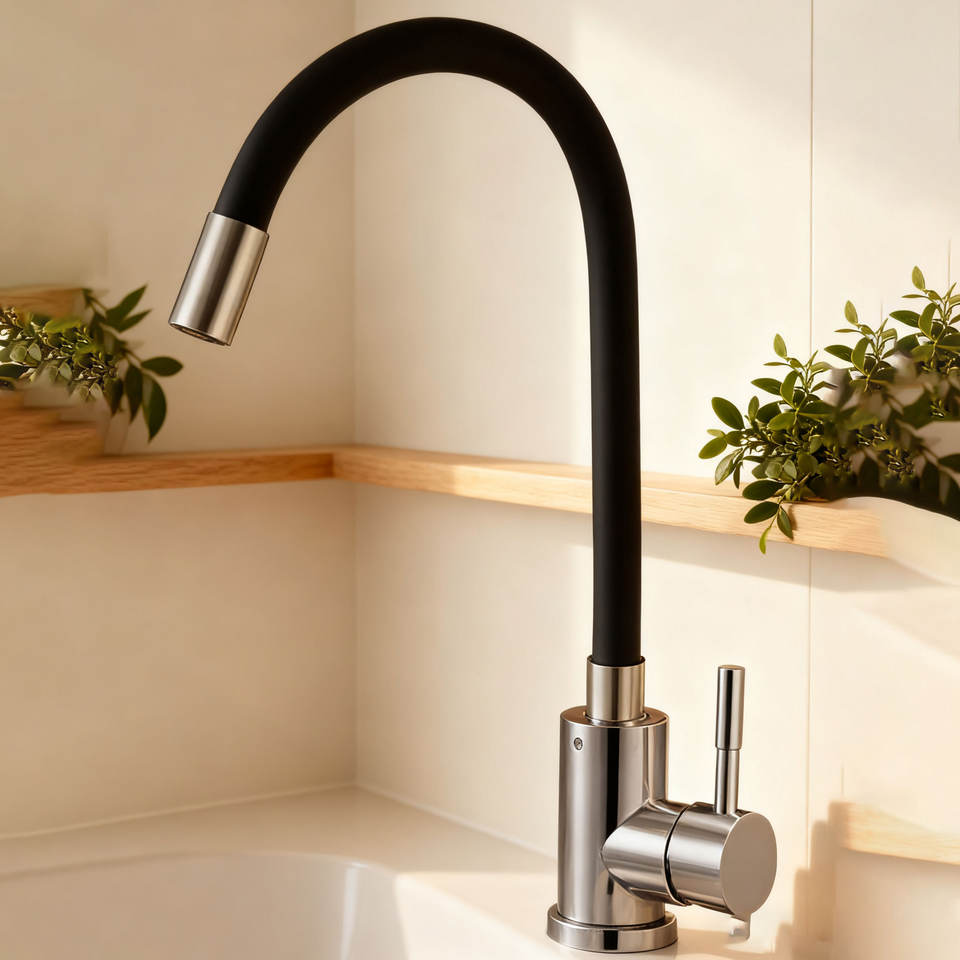 Robinet de cuisine rustique à poignée unique, noir chromé, acier inoxydable, cuivre, application hôtelière, mélangeur d'eau chaude et froide