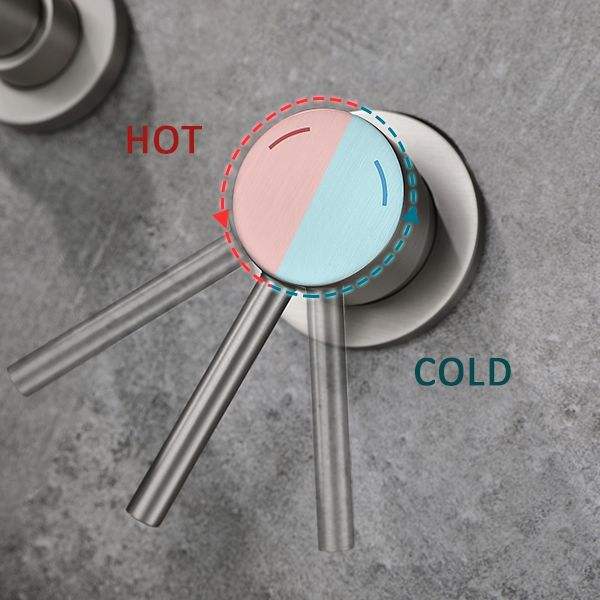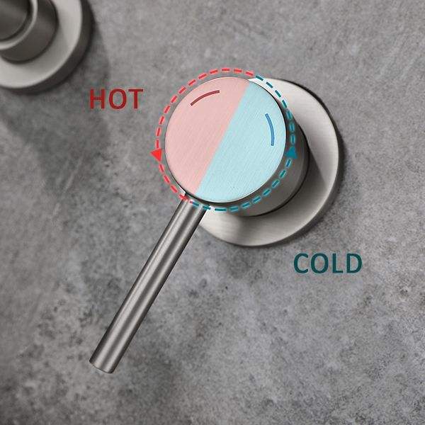 Robinet mural monocommande pour lavabo ou baignoire, en laiton, à 2 trous, finition nickel brossé - Robinets de lavabo