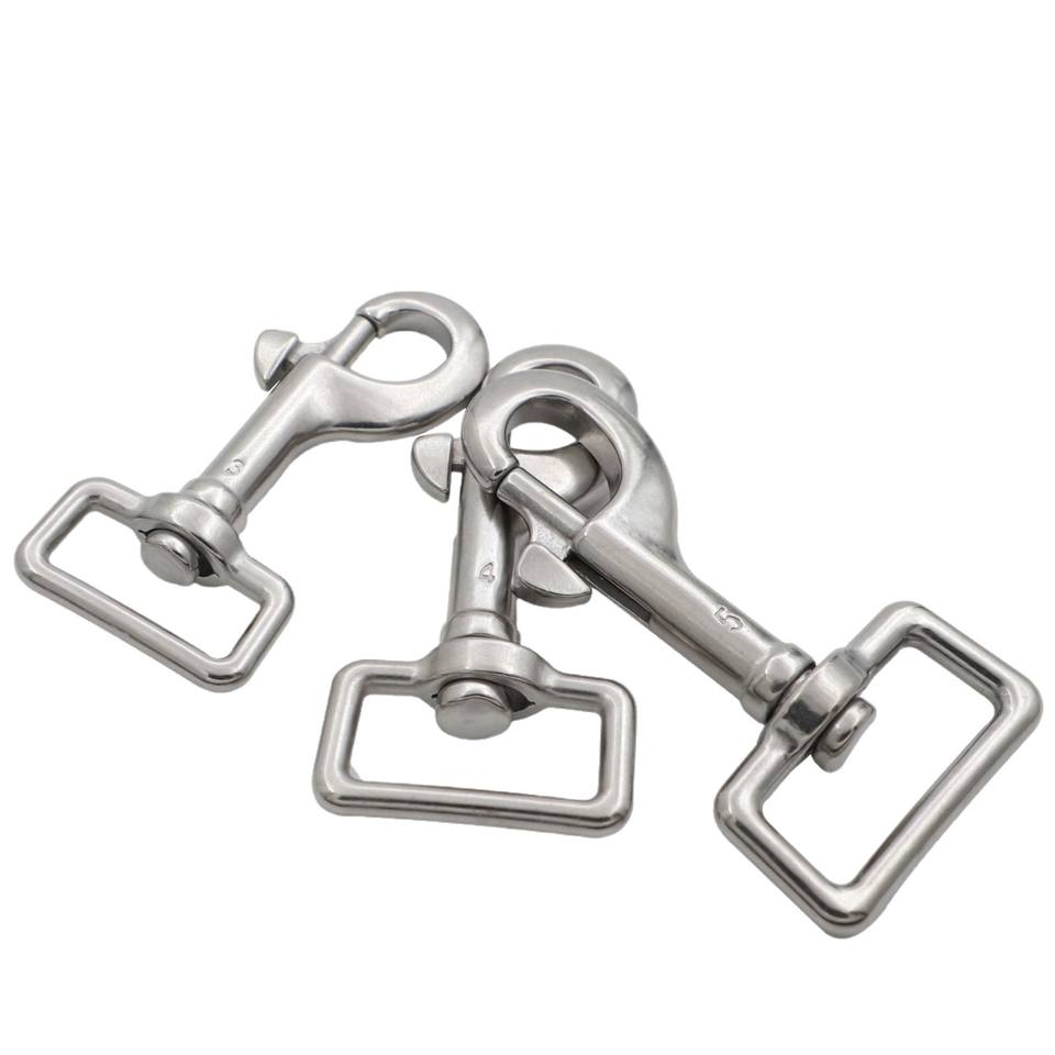 Crochet de laisse pour animaux de compagnie en acier inoxydable à tête unique, chaîne carrée, boucle de sac à ressort en sangle, accessoires en cuir pour chiens