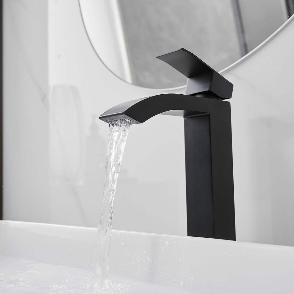 Robinet de salle de bain à arc haut à poignée unique noir mat à trou unique avec drain escamotable sans trop-plein Robinet de baignoire et de douche