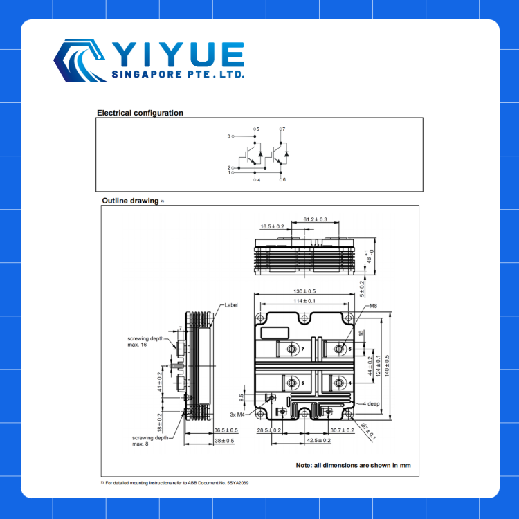 Semi-conducteur IGBT HiPak simple Hitachi Energy ABB AlSiC plaque de base capacité de cyclage haute puissance plaquette de silicium 5SNA0800J450300
