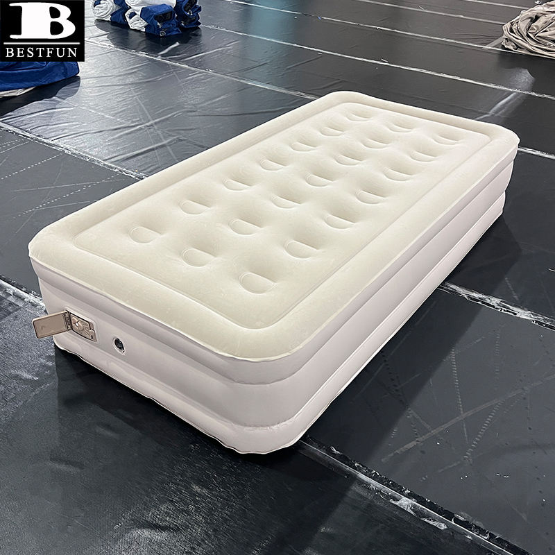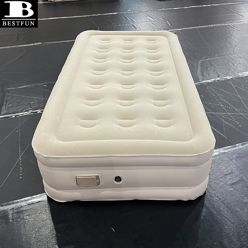 Matelas Gonflable Simple avec Pompe Électrique Intégrée, Lit Gonflable Portable Floqué surélevé pour la Maison, les Invités et le Camping