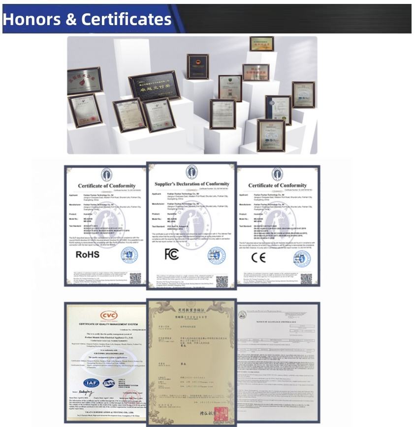 Capacité et sortie:3.0L Volume; 250 ml/h pour une sortie de brume maximale