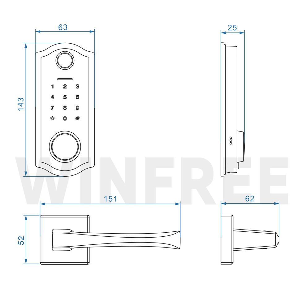 Méthode de déverrouillage:Carte + Code + Clé + Empreinte digitale + App