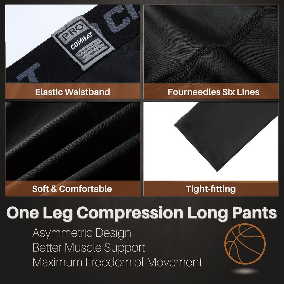 Collant de Compression 3/4 à Jambe Unique pour Hommes, Pantalon de Sport à Compression, Manche de Jambe de Basketball à Jambe Unique