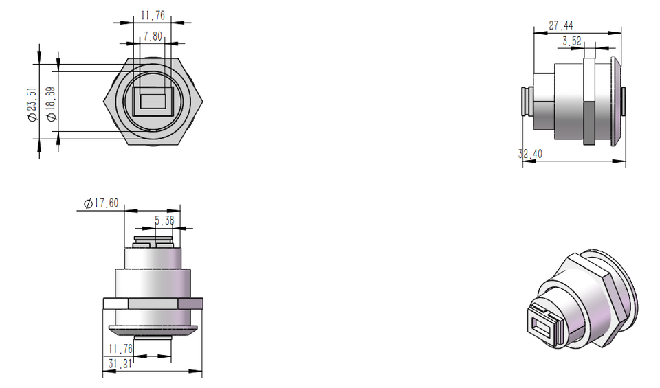 Coupleur de montage sur panneau à fibre optique SC réseau monomode noir femelle femelle en alliage de zinc intégré adaptateur de montage fixe fileté