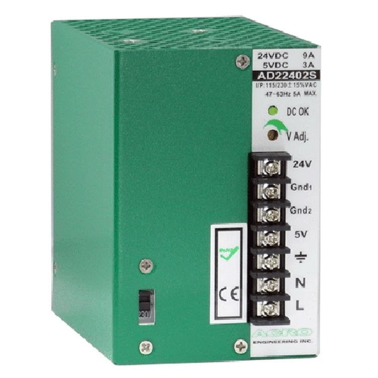 Alimentation à sortie unique 240W AC-DC SMPS avec entrée 115-230VAC, sortie 24VDC/5VDC, efficacité 84%, garantie 3 ans