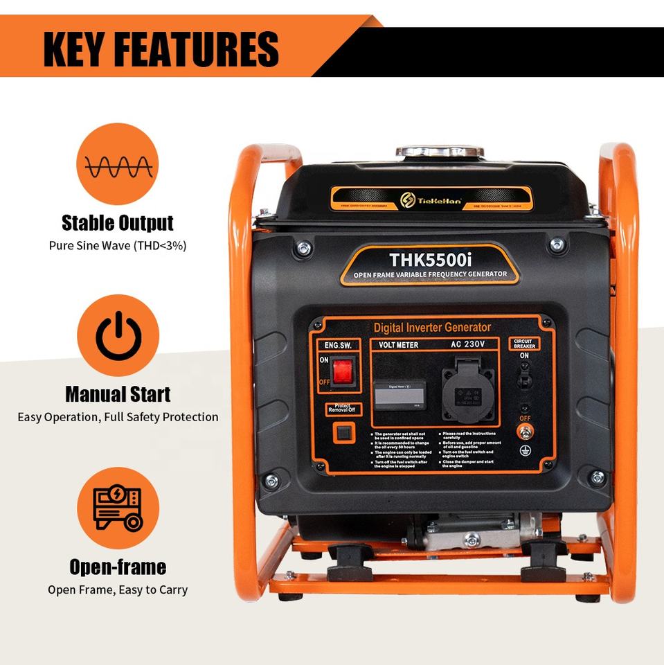 Générateur à essence monophasé à cadre ouvert à fréquence variable, démarrage manuel/électrique, moteur 4 temps, portable pour la maison