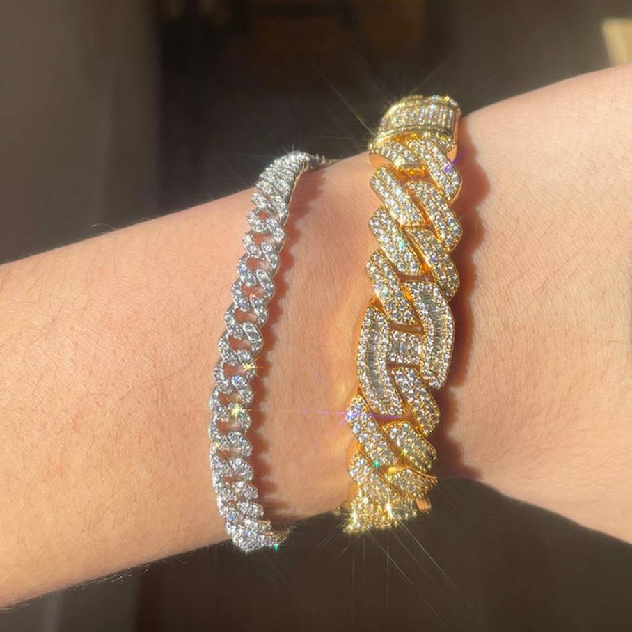 Bracelet en argent 925 à rangée unique, 6 mm de large, serti de diamants CZ 5A, style classique, chaîne cubaine, bracelet à breloques